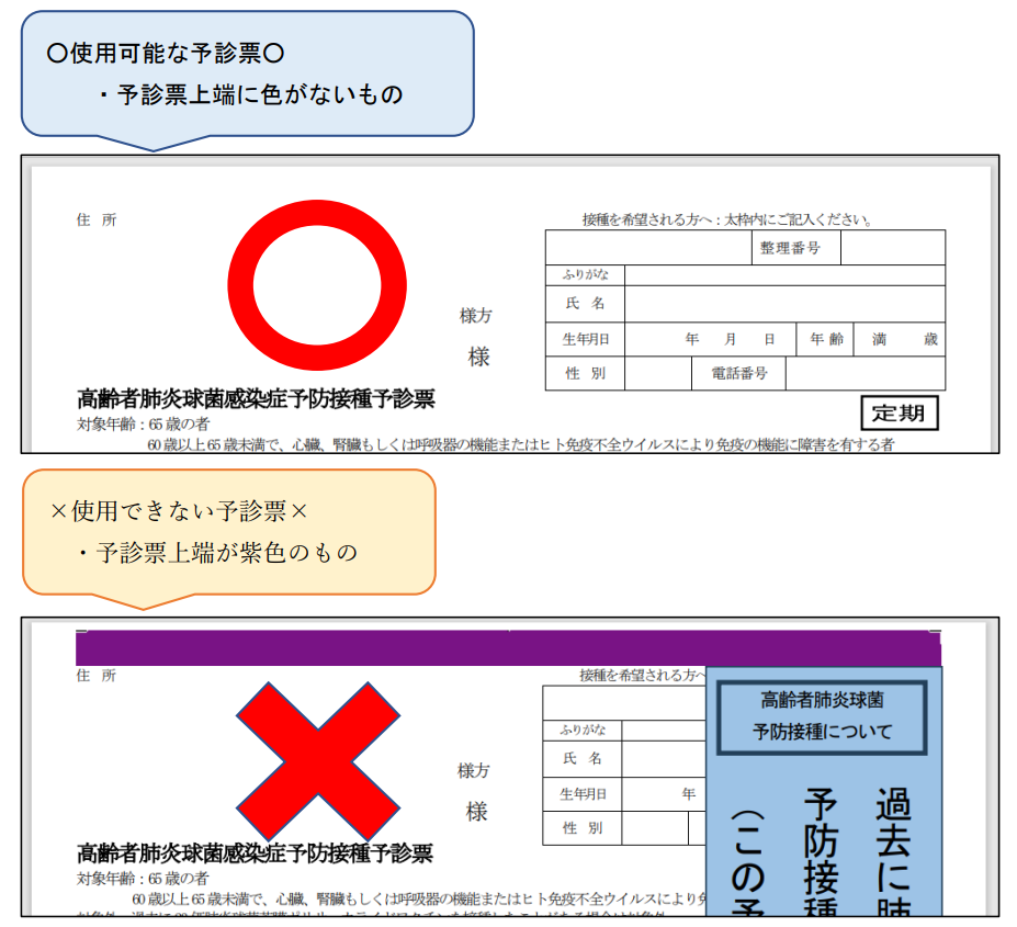 すでに予診票(上端ライン紫色)をお持ちの方で、接種が確認できない満65歳の方